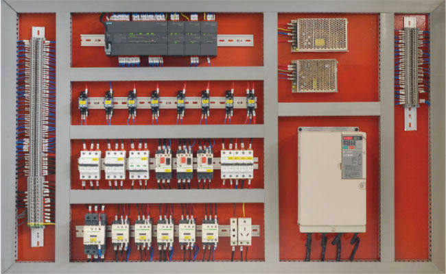 Feeding section Various models within the range and optional feeders can be installed subject to requirements. Both pin or standard open gripper type. Suitable for solid board up to 2,000gsm and corrugated board up to 9mm. | Electrical Control Part